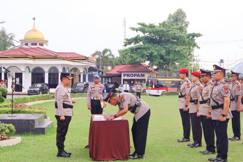 Pelalawan, – Polres Pelalawan, melaksanakan upacara serah terima jabatan (sertijab) dan sejumlah pejabat utama di lingkungan Polres Pelalawan, Jumat (27/3/2026) pagi, di Lapangan Apel Mapolres Pelalawan.