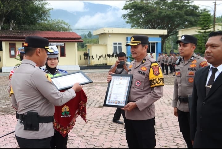 Polres Gayo Lues Beri Penghargaan kepada Anggota Satuan Brimob, Lantas, dan Bhabinkamtibmas Atas Soliditas Tugas Kemanusiaan
